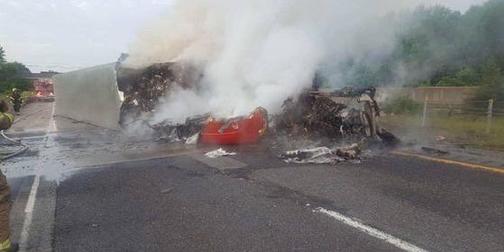 SEYMOUR, IN (TruckaingNewsNow.com) (Source: Indiana State Police) — Friday morning at approximately 6:45 am, the Indiana State Police responded to a two vehicle crash on I-65 northbound near the 51 mile marker that resulted in a lengthy closure of I-65 after a tractor trailer overturned and caught fire. The initial investigation by Trp. Seth Davidson indicated that a 2017 Freightliner