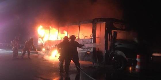 LAKE COUNTY, IN (TruckingNewsNow.com) (Source: Indiana State Police) — A church school bus caught fire, early this morning, causing all the occupants to flee from the bus. Preliminary investigation by Trooper William Stancy revealed at approximately 12:54 a.m., this morning, Saturday, June 30th, 2018, blue 2000 Champion school bus, owned by Herscher Christian Church, Herscher, Illinois, and driven by Sue A.